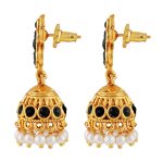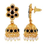 Design: Black Flower Design Jhumka Earrings with Dangling faux Pearls