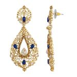 Design: Gold Filigree Pear Shaped Earrings accentuated with Blue CZ Stones