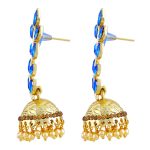 Blue Jhumka Earrings with Dangling Faux Pearls