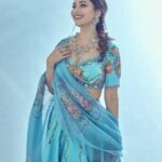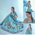 Design: Blue Taffeta Lehenga Choli with Dupatta, Latkan, and Light Cancan