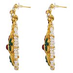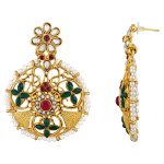 Design: Floral Dangle Earrings with Cut Out Design with Red and Green Enamel Stones