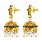 Design: Green Flower Top Jhumka with Dangling Faux Pearls