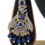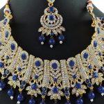 Description: Navy Blue Choker Necklace Set with Mang Tikka and Earrings