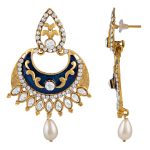 Design: Navy Blue and Gold Colored Meenakari Earrings with Dangle and Cutout