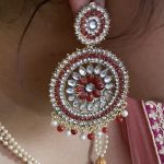 Design: Red and White Chandabali Earring with Stones