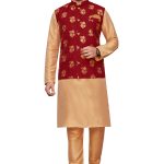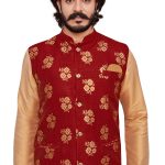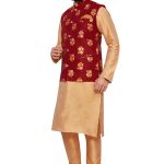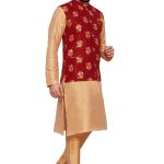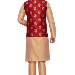 Product: Red Floral Modi Vest with Gold Kurta Pajama