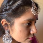 Description: Silver Oxidized Mang Tikka Set with Chandabali Earrings
