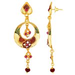 Design: Traditional Gold Tone Chandbali Dangle Earrings with Stones and Swirl Design