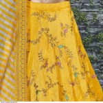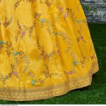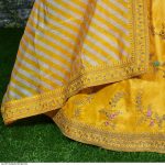 Design: Yellow Banglory Silk Lehenga Choli with Floral Embroidery and Striped Dupatta