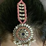 Design: Baby Pink Bahubali Earring Set with Mang Tikka