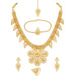 Design: Complete Floral Necklace Set with Mang, Ring, Bracelet, and Earrings