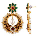 Design: Faux Pearl Dangle and Gold Plated Earrings with Floral Elements and faux Pearl Border