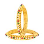 Design: Green and Red Stones with White Faux Pearls inlaid on a Gold Bangle Set
