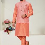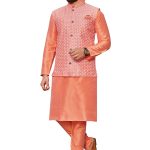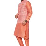 Product: Peach Embroidered Modi Vest with Kurta Pajama