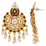 Design: Round Shape Earrings with Gold Plated Filigree Dangles and Leaf Inspired Tops