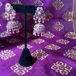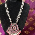 Description: Silver and Pink Necklace Set with Earrings with Faux Pearl Necklace Strands