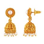 Design: Traditional White and Gold Jhumka with Dangling Faux Pearls