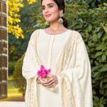 Product: White Heavy Rayon Salwar-Kameez with Foil Print Dupatta